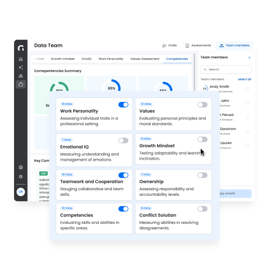 Make more informed decisions in talent acquisition and team building. Pick the assessments you need for your remote team development needs, including: